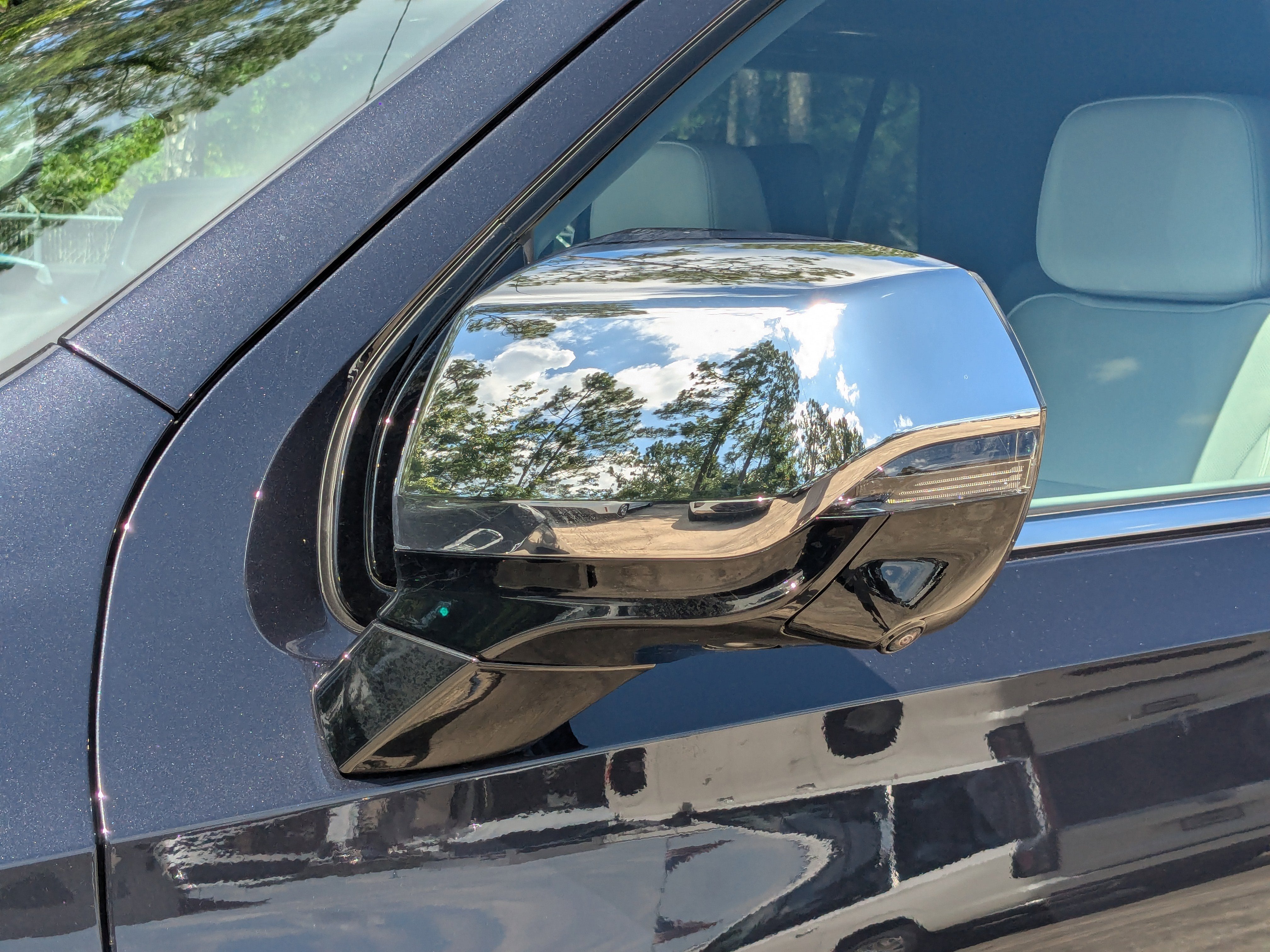 - Heated, power-folding outside mirrors with driver-side auto-dimming