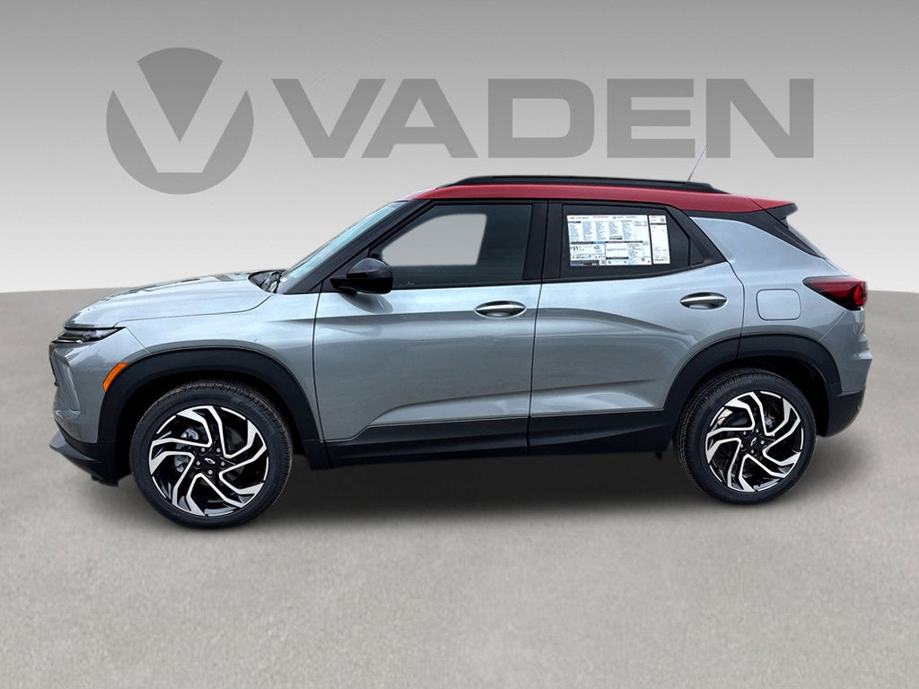 Vaden is pleased to offer this Sterling Gray Metallic 2026 Chevrolet TrailBlazer RS with Jet Black With Red Accents Premium Synthetic... Beautifully equipped with Convenience Package (1 Type-An and 1 Type-C USB Charging-Only Ports, 120-Volt Power Outlet, Cabin Humidity Sensor, Driver and Front Passenger Illuminated Vanity Mirrors, Hands Free Power Programmable Liftgate, Inside Rear-View Auto-Dimming Mirror, Single-Zone Automatic Climate Control, and Wireless Charging), Driver Confidence Package (Lane Change Alert with Side Blind Zone Alert, Rear Cross Traffic Alert, and Rear Park Assist), Preferred Equipment Group 1RS, 1 Type-An and 1 Type-C USB Ports, 2-Way Power Driver Lumbar Seat Adjuster, 4-Way Manual Front Passenger Seat Adjuster, 4-Wheel Disc Brakes, 5.45 Final Drive Axle Ratio, 6 Speakers, 8-Way Power Driver Seat Adjuster, ABS brakes, Air Conditioning, Alloy wheels, AM/FM radio: SiriusXM, Apex Red Two-Tone Roof, Auto High-beam Headlights, Brake assist, Bumpers: body-color, Compass, Delay-off headlights, Driver door bin, Driver vanity mirror, Dual front impact airbags, Dual front side impact airbags, Electronic Stability Control, Emergency communication system: OnStar and Chevrolet connected services capable, Enhanced Performance 6-Speaker Audio System, Evotex Seat Trim, Exterior Parking Camera Rear, Flat-Folding Front Passenger Seatback, Front anti-roll bar, Front Bucket Seats, Front Center Armrest, Front reading lights, Front wheel independent suspension, Fully automatic headlights, Heated door mirrors, Heated Driver and Front Passenger Seats, Heated front seats, Heated steering wheel, Illuminated entry, Knee airbag, Low tire pressure warning, Mechanical Jack with Tools, Occupant sensing airbag, Overhead airbag, Overhead console, Panic alarm, Passenger door bin, Passenger vanity mirror, Power door mirrors, Power driver seat, Power steering, Power windows, Radio data system, Radio: AM/FM Stereo Audio System, Rear seat center armrest, Rear side impact airbag, Rear window defroster, Rear window wiper, Remote keyless entry, Ride and Handling Suspension, Security system, SiriusXM Trial Subscription, Speed control, Split folding rear seat, Spoiler, Steering wheel mounted audio controls, Tachometer, Telescoping steering wheel, Tilt steering wheel, Traction control, Trip computer, Variably intermittent wipers, Wheels: 19" High Gloss Black Machined Aluminum, and Wireless Apple CarPlay/Android Auto!
