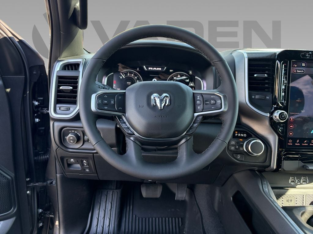 Quick Order Package 27Z Big Horn. Big Horn Level 2 Equipment Group: Google Android Auto; SiriusXM Radio Service; USB Host Flip; Power Adjustable Pedals; Leather Wrapped Steering Wheel; Integrated Voice Command with Bluetooth®; 12" Touchscreen Display; Glove Box Lamp; Auto Power-Folding Mirrors; 115V Auxiliary Rear Power Outlet; Media Hub with 2 Charge Only USBs; Heated Front Seats; Security Alarm; Black Premium Power Mirrors; Apple CarPlay; Premium Overhead Console; 9 Amplified Speakers with Subwoofer; Disassociated Touchscreen Display; Body Color Fender Flares; Remote Tailgate Release; 115V Auxiliary Power Outlet; LED Dome Lamp with On/off Switch; Universal Garage Door Opener; 2nd Row in Floor Storage Bins; Sun Visors with Illuminated Vanity Mirrors; LED Footwell Lighting; Rear Window Defroster; Integrated Center Stack Radio; Rear View Auto Dim Mirror; Rear Power Sliding Window; Connectivity - US/Canada; GPS Navigation; 4G LTE Wi-Fi Hot Spot; GPS Antenna Input; Overhead LED Lamps; Exterior Mirrors with Heating Element; Auto Dim Exterior Driver Mirror; SiriusXM with 360L; Global Telematics Box Module; Connected Travel and Traffic Services; Heated Steering Wheel; Configurable Drive Mode; 400W Inverter; HD Radio; Deluxe Cloth Bucket Seats; Uconnect 5 Navigation with 12.0" Display Radio; Exterior Mirrors with Supplemental Signals; Steering Wheel Mounted Audio Controls; Exterior Mirrors Courtesy Lamps; Air Conditioning ATC with Dual Zone Control; Cluster 7.0" TFT Color Display; Convex Wide-Angle Exterior Mirror Insert. Night Edition: 275/55R20 OWL All Season Tires; Accent Color Premium Power Mirrors; Exterior Mirrors with Supplemental Signals; Black Headlamp Bezels; Exterior Mirrors Courtesy Lamps; Grille Black Surround Black Mesh; Auto Power-Folding Mirrors; Exterior Mirrors with Heating Element; 20" X 9.0" Aluminum Painted Clad Wheels; Auto Dim Exterior Driver Mirror; Black Exterior Truck Badging; Anti-Spin Differential Rear Axle; Accent Color Door Handles; Accent Color Tailgate Handle; Black Interior Accents; Dual Exhaust with Black Tips; Body Color Front Bumper; Convex Wide-Angle Exterior Mirror Insert; Body Color Rear Bumper with Step Pads; Black Tail Lamp Bezels; RAM Grille Badge - Black; Black Painted Exterior Mirrors Caps. Quick Order Package 23Z Big Horn. RamBox Cargo Management System. 9 Amplified Speakers with Subwoofer. MOPAR Black Tubular Side Steps. Anti-Spin Differential Rear Axle. Granite Crystal Met CC. Cluster 12" TFT Color Display. MyFlexCare Service Plan. MOPAR Front and Rear Rubber Floor Mats. 3.92 Rear Axle Ratio. Rear Wheelhouse Liners. **Equipment listed is based on original vehicle build and subject to change. Please confirm the accuracy of the included equipment by calling the dealer prior to purchase.**