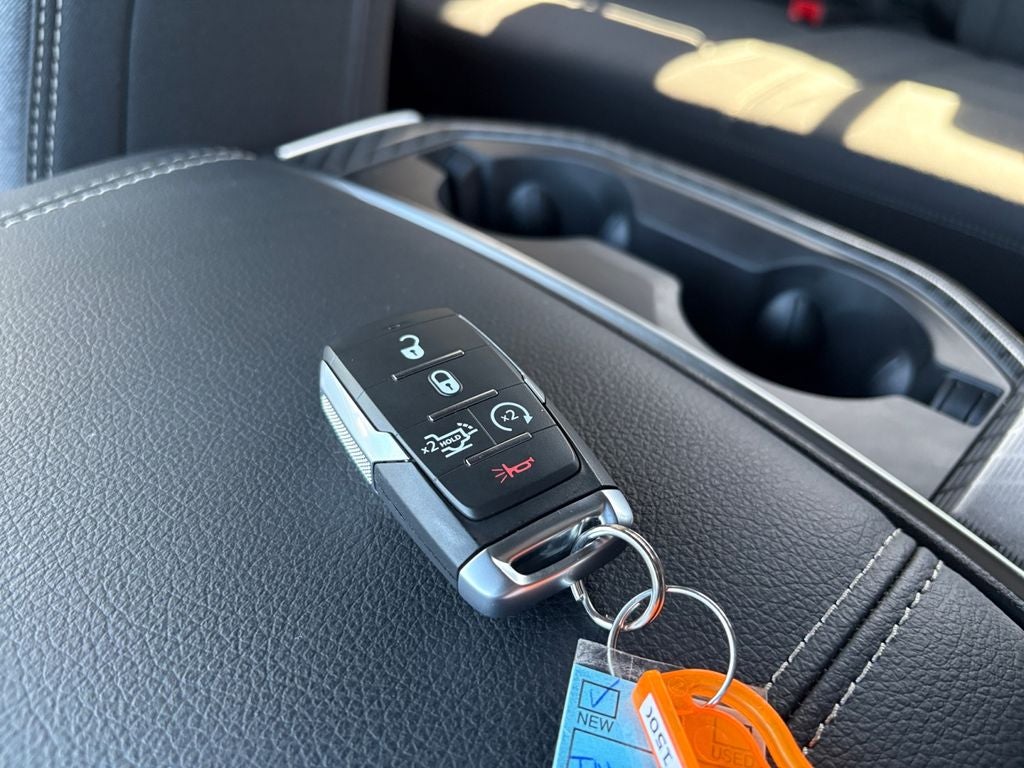Quick Order Package 27Z Big Horn. Big Horn Level 2 Equipment Group: Google Android Auto; SiriusXM Radio Service; USB Host Flip; Power Adjustable Pedals; Leather Wrapped Steering Wheel; Integrated Voice Command with Bluetooth®; 12" Touchscreen Display; Glove Box Lamp; Auto Power-Folding Mirrors; 115V Auxiliary Rear Power Outlet; Media Hub with 2 Charge Only USBs; Heated Front Seats; Security Alarm; Black Premium Power Mirrors; Apple CarPlay; Premium Overhead Console; 9 Amplified Speakers with Subwoofer; Disassociated Touchscreen Display; Body Color Fender Flares; Remote Tailgate Release; 115V Auxiliary Power Outlet; LED Dome Lamp with On/off Switch; Universal Garage Door Opener; 2nd Row in Floor Storage Bins; Sun Visors with Illuminated Vanity Mirrors; LED Footwell Lighting; Rear Window Defroster; Integrated Center Stack Radio; Rear View Auto Dim Mirror; Rear Power Sliding Window; Connectivity - US/Canada; GPS Navigation; 4G LTE Wi-Fi Hot Spot; GPS Antenna Input; Overhead LED Lamps; Exterior Mirrors with Heating Element; Auto Dim Exterior Driver Mirror; SiriusXM with 360L; Global Telematics Box Module; Connected Travel and Traffic Services; Heated Steering Wheel; Configurable Drive Mode; 400W Inverter; HD Radio; Deluxe Cloth Bucket Seats; Uconnect 5 Navigation with 12.0" Display Radio; Exterior Mirrors with Supplemental Signals; Steering Wheel Mounted Audio Controls; Exterior Mirrors Courtesy Lamps; Air Conditioning ATC with Dual Zone Control; Cluster 7.0" TFT Color Display; Convex Wide-Angle Exterior Mirror Insert. Night Edition. Bed Utility Group: MOPAR Spray in Bedliner; MOPAR Deployable Bed Step; MOPAR 4 Adjustable Cargo Tie-Down Hooks; Pick-Up Box Lighting; Exterior 115V AC Outlet. Quick Order Package 23Z Big Horn. 9 Amplified Speakers with Subwoofer. E-Locker Rear Axle. 33 Gallon Fuel Tank. Cluster 12" TFT Color Display. 3.92 Rear Axle Ratio. **Equipment listed is based on original vehicle build and subject to change. Please confirm the accuracy of the included equipment by calling the dealer prior to purchase.**