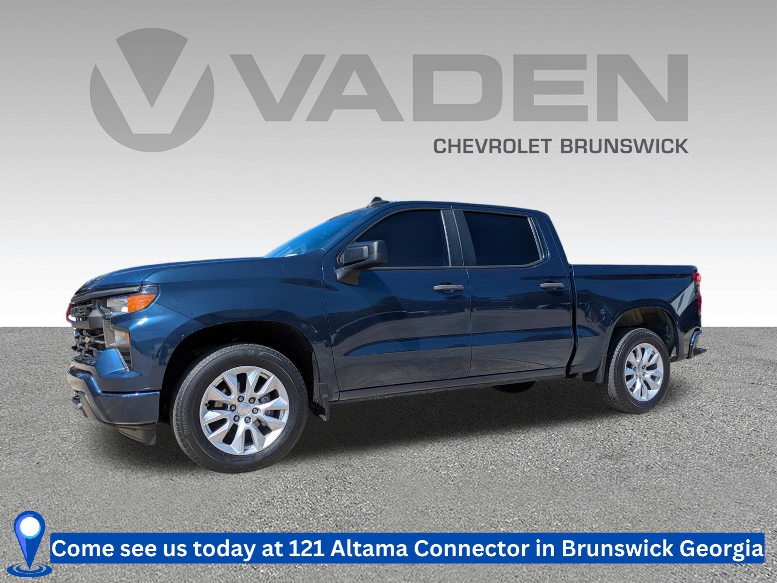 Vaden is pleased to offer this Northsky Blue Metallic 2022 Chevrolet Silverado 1500 Custom with Black Cloth... Beautifully equipped with Custom Convenience Package (Electric Rear-Window Defogger, EZ Lift Power Lock & Release Tailgate, LED Cargo Area Lighting, and Remote Vehicle Starter System), Custom Value Package, High Capacity Suspension Package, Preferred Equipment Group 1CX (10-Way Power Driver Seat w/Lumbar, 120-Volt Bed Mounted Power Outlet, 120-Volt Instrument Panel Power Outlet, 3.5" Monochromatic Display Driver Info Center, Bluetooth® For Phone, Chevrolet Connected Access Capable, Color-Keyed Carpeting Floor Covering, Compass, Deep-Tinted Glass, Dual Rear USB Ports (Charge Only), Electrical Steering Column Lock, Electronic Cruise Control, Front Frame-Mounted Black Recovery Hooks, Front Rubberized Vinyl Floor Mats, HD Rear Vision Camera, Manual Tilt Wheel Steering Column, OnStar & Chevrolet Connected Services Capable, Power Front Windows w/Driver Express Up/Down, Power Front Windows w/Passenger Express Down, Power Rear Windows w/Express Down, Rear 60/40 Folding Bench Seat (Folds Up), Rear Rubberized-Vinyl Floor Mats, Remote Keyless Entry, SiriusXM Radio, Standard Tailgate, Theft Deterrent System (Unauthorized Entry), Wi-Fi Hot Spot Capable, and Wireless Phone Projection), Trailering Package (Hitch Guidance), 8-Speed Automatic, Black Cloth, 3.42 Rear Axle Ratio, 4-Wheel Disc Brakes, 40/20/40 Front Split-Bench Seat, 6 Speakers, 6-Speaker Audio System, 6" Rectangular Black Tubular Assist Steps (LPO), ABS brakes, Air Conditioning, Alloy wheels, AM/FM radio: SiriusXM, Apple CarPlay/Android Auto, Auto High-beam Headlights, Automatic Emergency Braking, Brake assist, Bumpers: body-color, Chevytec Spray-On Black Bedliner, Cloth Seat Trim, Delay-off headlights, Driver door bin, Driver vanity mirror, Dual front impact airbags, Dual front side impact airbags, Electronic Stability Control, Following Distance Indicator, Forward Collision Alert, Front anti-roll bar, Front Center Armrest w/Storage, Front Pedestrian Braking, Front reading lights, Front wheel independent suspension, Fully automatic headlights, Heated door mirrors, Illuminated entry, IntelliBeam Automatic High Beam On/Off, Lane Keep Assist w/Lane Departure Warning, Low tire pressure warning, Occupant sensing airbag, Outside temperature display, Overhead airbag, Overhead console, Panic alarm, Passenger door bin, Passenger vanity mirror, Power door mirrors, Power driver seat, Power steering, Power windows, Premium audio system: Chevrolet Infotainment 3, Radio data system, Radio: Chevrolet Infotainment 3 System, Rear reading lights, Rear step bumper, Rear window defroster, Remote keyless entry, Security system, Speed control, Speed-sensing steering, Split folding rear seat, Tachometer, Tilt steering wheel, Traction control, Trip computer, Variably intermittent wipers, Voltmeter, and Wheels: 20" x 9" Bright Silver Painted Aluminum! Approved customer communicated additions (repairing minor cosmetic flaw, added accessories, etc.) Prior to delivery will be subject to additional charges. ***All of Our Vaden New Car Pricing is Transparent, the price you see is the price you pay!!**** POWER PACKAGE, 8-Speed Automatic, Black Cloth.