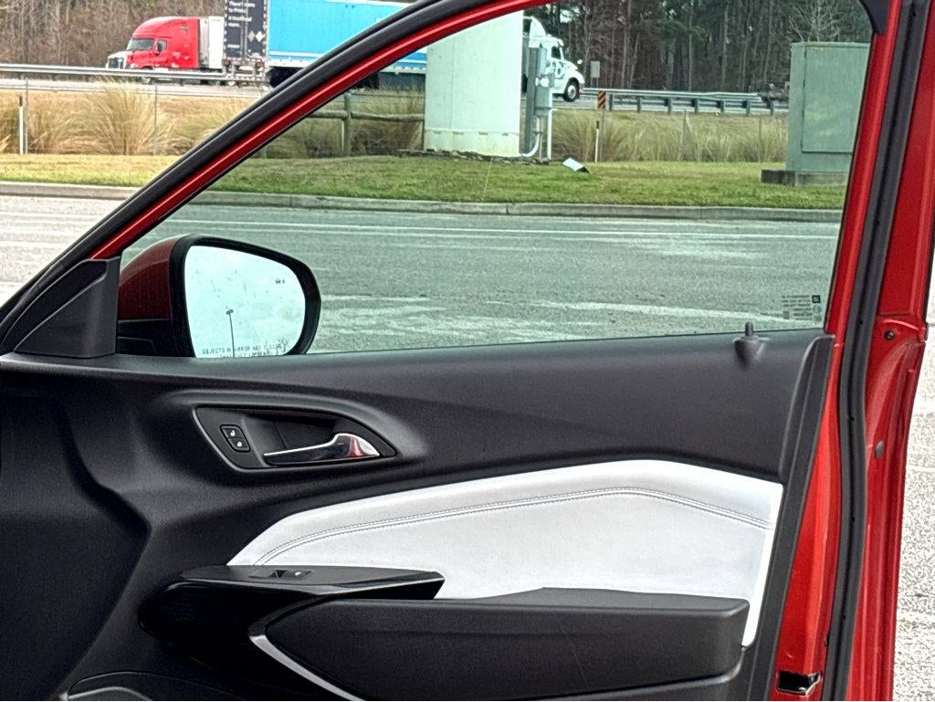 Vaden is pleased to offer this Cayenne Orange Metallic 2024 Chevrolet Trax LT with Jet Black With Blue Accents Cloth... Beautifully equipped with Driver Confidence Package (Adaptive Cruise Control, Lane Change Alert w/Side Blind Zone Alert, and Rear Cross-Traffic Alert), License Plate Front Mounting Package, LT Convenience Package (Heated Driver & Front Passenger Seats, Heated Power-Adjustable Outside Mirrors, Heated Steering Wheel, Keyless Open, and Wrapped Steering Wheel), Preferred Equipment Group 1LT, 2-Way Adjustable Front Head Restraints, 3.50 Final Drive Axle Ratio, 4-Way Manual Front Passenger Seat Adjuster, 4-Wheel Disc Brakes, 6 Speakers, 6-Speaker Audio System Feature, 6-Way Manual Driver Seat Adjuster, ABS brakes, Air Conditioning, Alloy wheels, AM/FM radio: SiriusXM, Auto High-beam Headlights, Automatic temperature control, Brake assist, Bumpers: body-color, Cloth/Evotex Seat Trim, Compass, Delay-off headlights, Driver door bin, Driver vanity mirror, Dual front impact airbags, Dual front side impact airbags, Electronic Stability Control, Emergency communication system: OnStar and Chevrolet connected services capable, Exterior Parking Camera Rear, Front anti-roll bar, Front Bucket Seats, Front Center Armrest, Front reading lights, Front wheel independent suspension, Fully automatic headlights, Illuminated entry, Low tire pressure warning, Occupant sensing airbag, Outside temperature display, Overhead airbag, Overhead console, Panic alarm, Passenger door bin, Passenger vanity mirror, Power door mirrors, Power steering, Power windows, Premium audio system: Chevrolet Infotainment 3, Radio data system, Radio: Audio System w/AM/FM, Rear Park Assist (DISC), Rear window defroster, Rear window wiper, Remote keyless entry, Security system, SiriusXM, Speed control, Split folding rear seat, Spoiler, Steering wheel mounted audio controls, Tachometer, Telescoping steering wheel, Tilt steering wheel, Traction control, Trip computer, Variably intermittent wipers, and Wheels: 17" Gray-Painted Machined Aluminum!